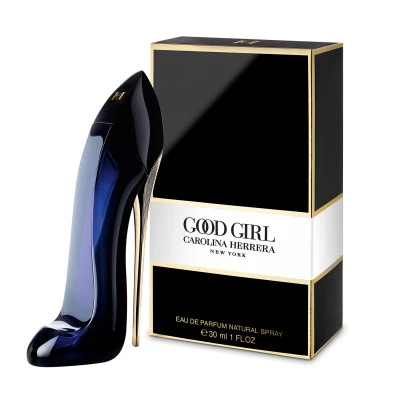 Contenue dans son flacon signature en forme de talon aiguille stiletto vertigineux, l’eau de parfum Good Girl se pare d’une enveloppe sensuelle bleu nuit, rehaussé d’une touche d’or. Capturée en son cœur, une fragrance dominée par le jasmin qui se mêle au parfum intense du cacao et de la fève tonka, rehaussé par des notes d’amande et de café.
